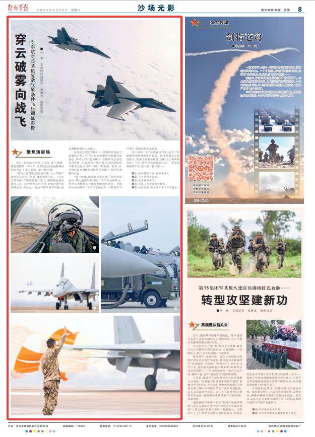 春日,某机场上空低云笼罩、雾气蒙蒙。随着指挥员一声令下,空军航空兵某旅数架战机加力起飞,穿云破雾飞赴训练空域。