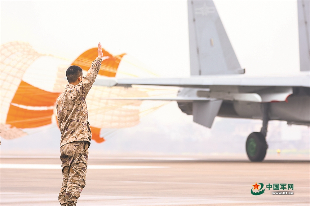 “雾气弥漫,跑道能见度较低。”战机返航途中,塔台通报气象情况。飞行员全神贯注,利用仪表数据变化精准判断战机状态。在地面协同引导下,飞行员紧握拉杆,不断修正飞行姿态,驾驶战机安全着陆。