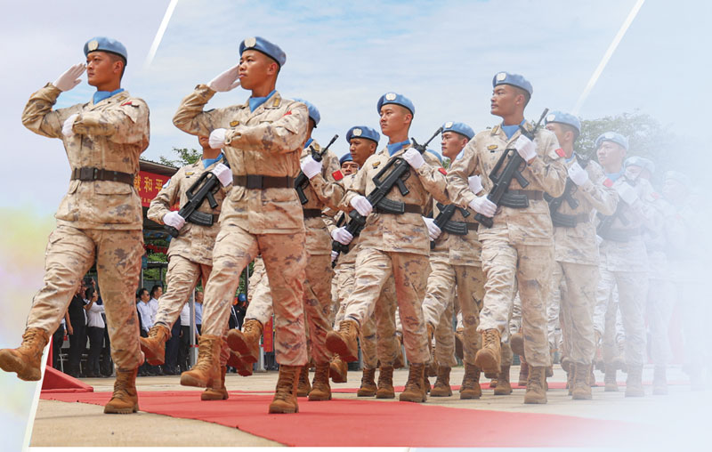 中国在坚持走和平发展道路、取得重大发展成就的同时,积极承担国际责任与义务。在维和任务区,中国维和部队实现了力量构成从单一军种向多军兵种拓展、任务类型从支援保障向综合多能转型、行动目标从制止武装冲突向建设持久和平延伸;在国际人道主义救援一线,“和平方舟”“丝路方舟”医院船先后执行“和谐使命”任务,一批批援外军医专家组为当地民众留下“带不走的医疗队”;在远海大洋,中国海军累计派出48批护航编队为亚丁湾索马里海域船舶护航,护航区域不断拓展、护航模式不断创新、保障能力不断升级……中国军队走出国门、担当作为,展现了一个负责任大国对和平的不懈追求与积极贡献。
