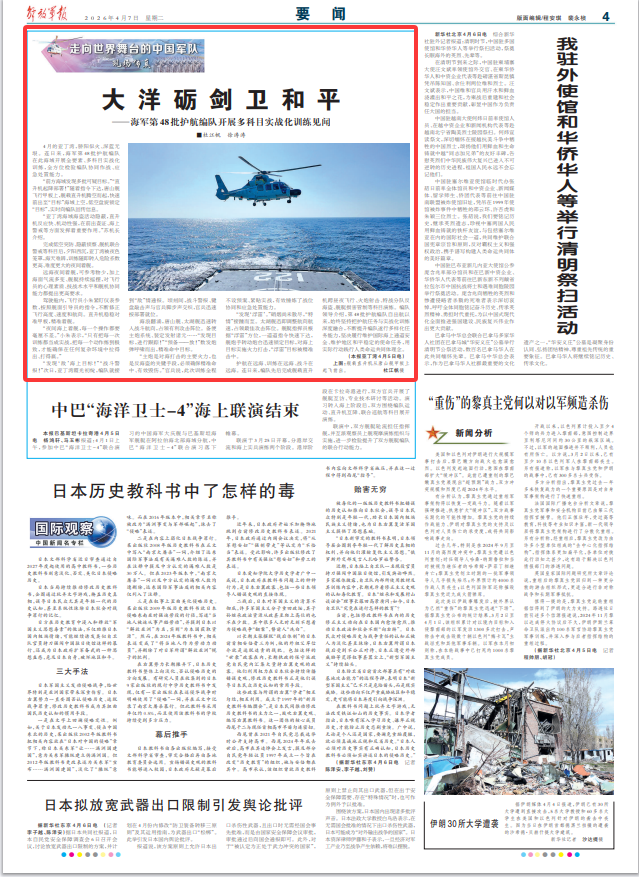 4月的亚丁湾,骄阳似火、深蓝无垠。连日来,海军第48批护航编队在此海域开展全要素、多科目实战化训练,全方位检验编队协同作战、应急处置能力。