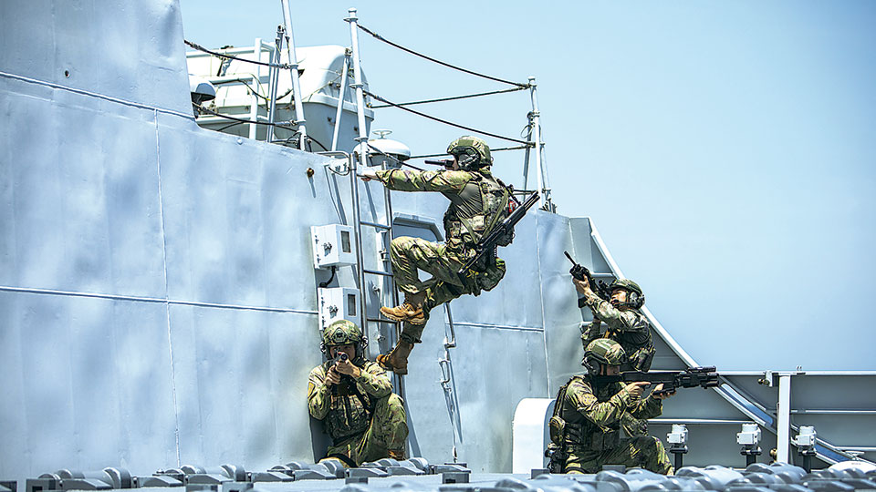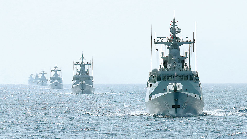 海天协同砺精兵——海军第48批护航编队开展反海盗演练速写