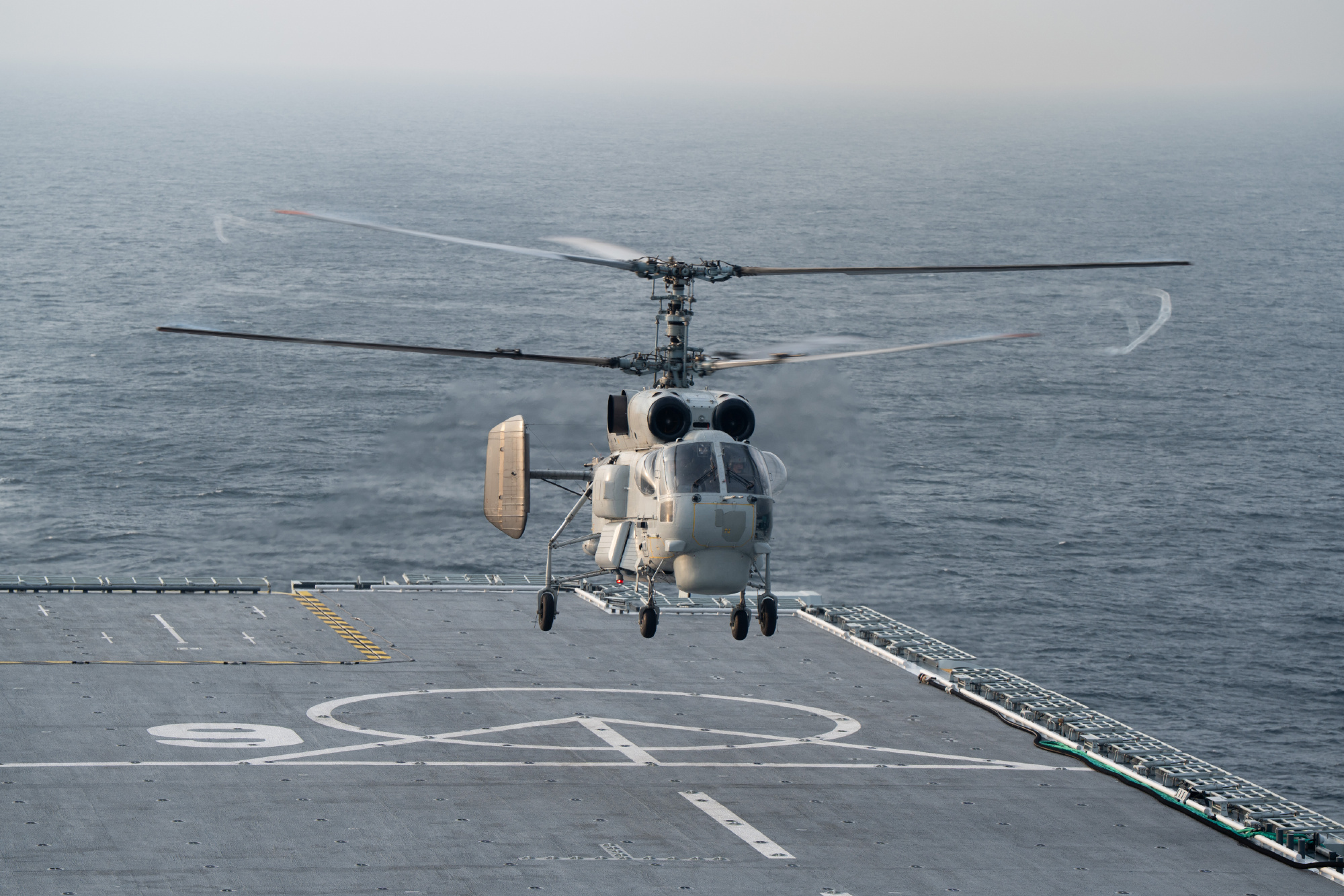 近日,东部战区海军某舰艇部队联合舰载直升机某部,开展实战化舰机协同训练。
