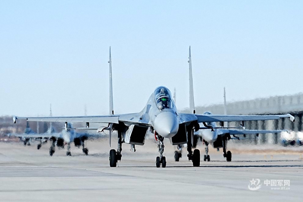 一月上旬,空军航空兵某旅机场战机列阵、引擎轰鸣,全体官兵以昂扬的姿态开展新年度首个飞行日实战化训练。