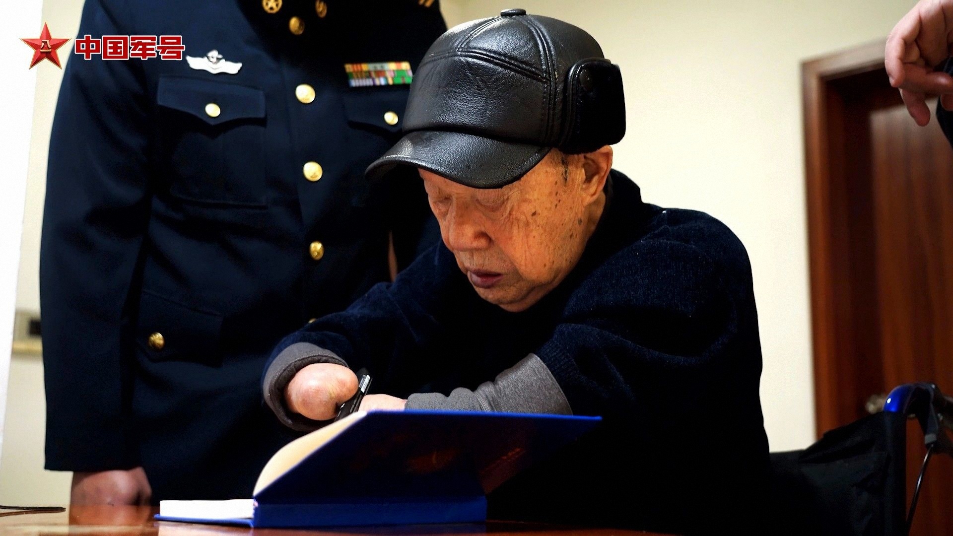 说话间,随行的班长林政龙拿出了连队史册递给周全弟,郑重说道:“我是九班班长林政龙,这是连队史册。”当周全弟听到“九班”两个字时,瞬间激动起来,声音也变得哽咽:“我原来在部队也是在九班,我们是在一个班啊!当时我们班有十几个人的,几乎都牺牲了……”一句句急切的话语,满是意外与欣喜,跨越七十余年的“同班之缘”,让两代军人的心紧紧贴在一起,也让红色血脉在不经意间悄然传承。林政龙握着老人的手臂,轻声诉说着连队九班如今的模样,周全弟认真倾听,频频点头,眼中满是欣慰。