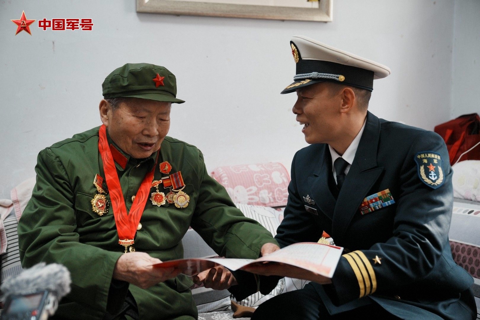 新春的脚步渐近,牵挂的深情跨越山海而来。海军某部“冲山阻击营”官兵代表,带着全体官兵的崇敬与祝福,辗转来到山东沂源,登门探望抗美援朝老兵朱志学。“报告老营长,我代表全营官兵来看您!”一见面,“冲山阻击营”干部黄天乐与老英雄的两双手便紧紧握在一起,一股无形的力量在两代军人间传递。