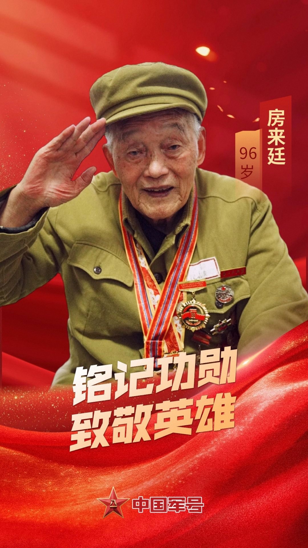 房来廷,1930年出生于山东省邹城市石墙镇羊绪前村,原26军77师231团2营5连2排5班战士。先后参加抗日战争、解放战争、抗美援朝战争等众多战役战斗。1942年,12岁的房来廷参加了抗日儿童团,1945年加入敌后武工队。在解放战争期间,他参加了淮海战役、解放上海等战役战斗 。1950年11月,参加抗美援朝战争,在长津湖战役中,他双腿严重受伤。1953年复员返乡。多年来,房来廷始终心系老部队,2025年1月,经过多方确认,房来廷老部队是海军某部。