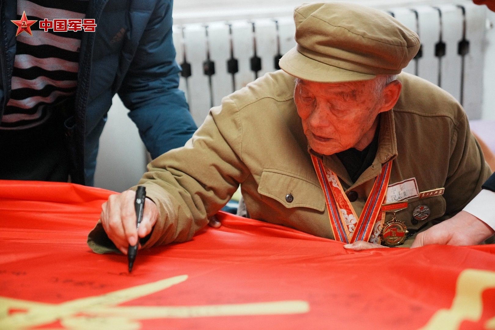 离别之际,官兵代表展开连旗,请房来廷签上名字。房来廷轻抚连旗,郑重地写下自己的名字,叮嘱官兵要传承好连队的红色基因,让战旗永远鲜艳。官兵们向房老庄严敬礼,承诺必将牢记嘱托,把英雄精神融入练兵备战的每一个环节,用实际行动守护家国,让英雄的精神在连队代代相传。