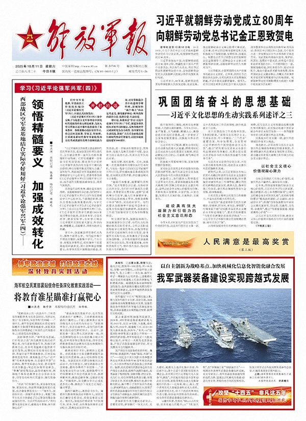 国之重器相继加速列装部队。2020年,055型驱逐舰首舰南昌舰入列;2021年,长征18号艇、大连舰、海南舰入列;2022年,福建舰下水、运油-20投入练兵备战;2025年,“东风-61”陆基洲际导弹等国之重器公开亮相……新时代新征程,我军相继攻克一大批高精尖技术,研制出一大批先进武器装备,开创了武器装备建设新局面,有力支撑战斗力大幅跃升。