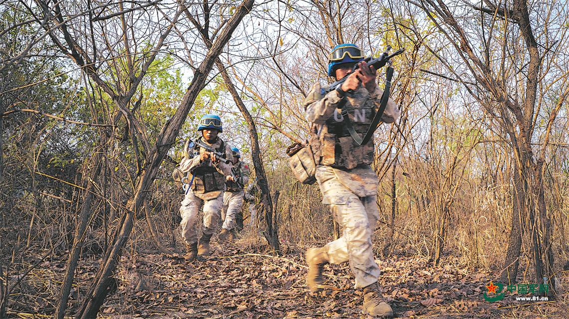 任务期间,维和步兵营官兵开展紧急出动演练。王昆博摄