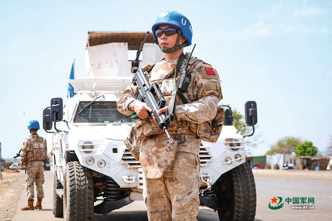 近日,中国第12批赴南苏丹(朱巴)维和步兵营官兵根据联南苏团授权,完成朱巴到摩吉瑞地区的短途巡逻和武装护卫任务。领受任务后,我维和步兵营第一时间研究制订行动方案,并对沿途情况进行全方位综合分析研判。图为官兵观察警戒。靳乐康摄
