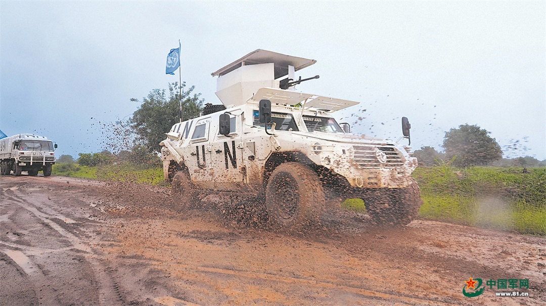 维和步兵营官兵执行巡逻任务。郑英为摄
