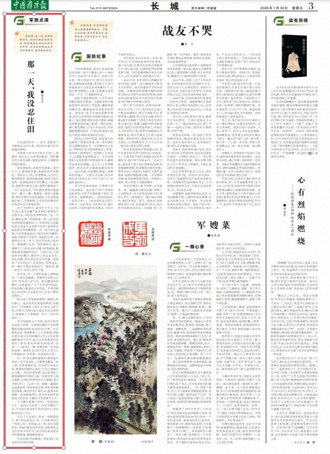 有一次,股长摩挲着茶杯,缓缓地对我说:“文字很奇妙。它能帮你藏起一些心事,但更重要的是,当你把它对准生活、真诚地挖掘和记录时,它自己就能生出力量,一种让你更坚韧、也让读到的人感到温暖和共鸣的力量。”我愈发努力地去观察、去感受军营里的点点滴滴,用文字将它们一一记录下来。随着一篇篇作品逐渐成型,我惊喜地发现,那些曾经被我忽视的,都化作笔下最生动、最真实的情感。我也渐渐明白,股长所说的军营里动人的东西,正藏在平凡的细节之中。