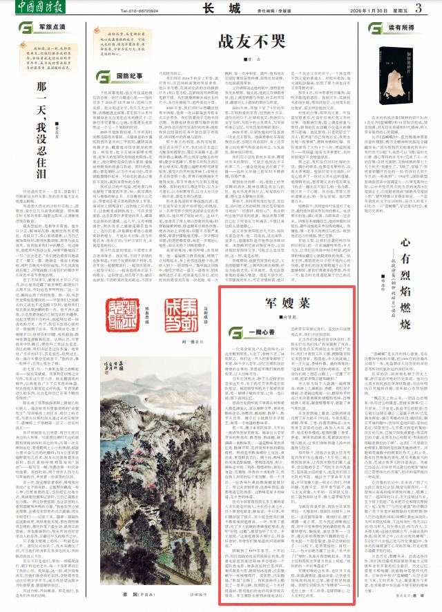 军嫂们做的这些菜,也许并不高档,却盛满情谊、蕴涵深意,让我感受到纯真的战友之情,感受到家的温暖。我给它们取名为“军嫂菜”——这是世上独一无二的菜,是暖胃暖心、让人长相忆的菜。