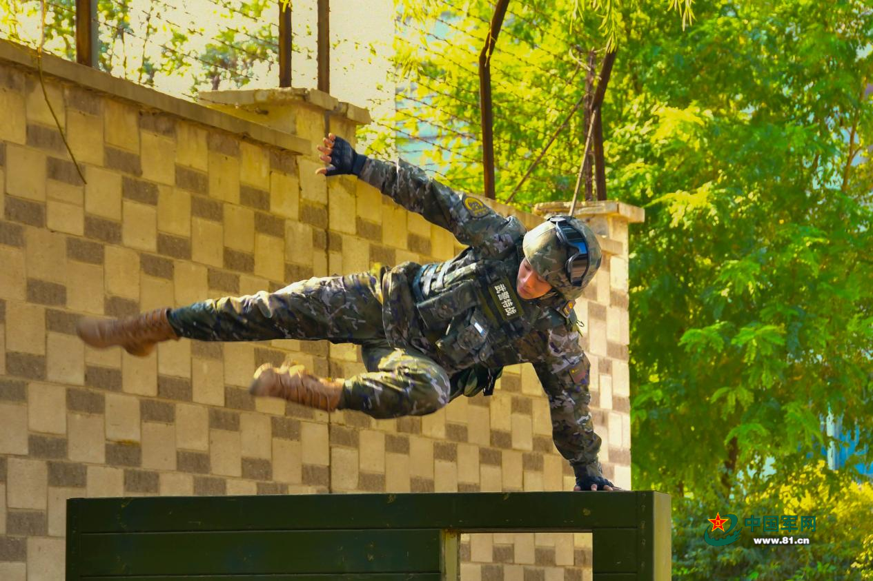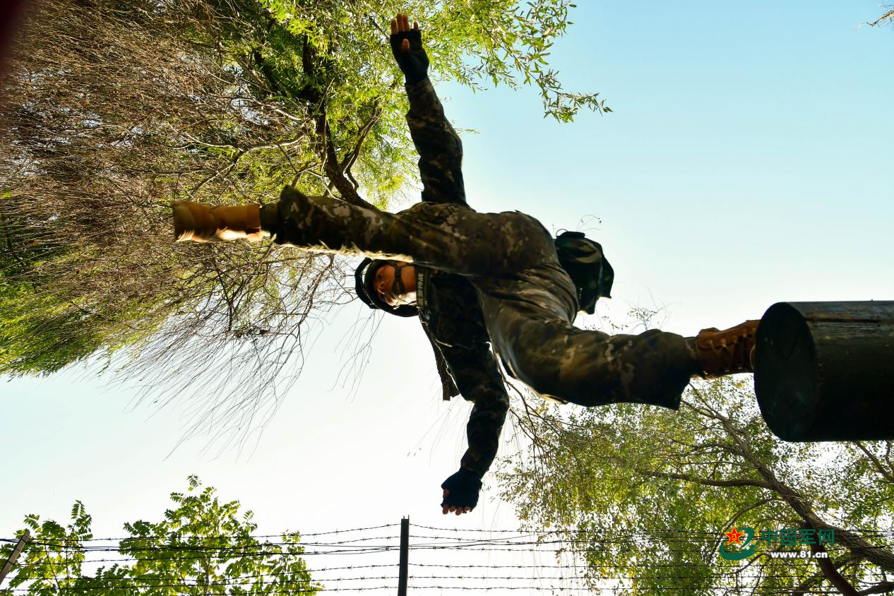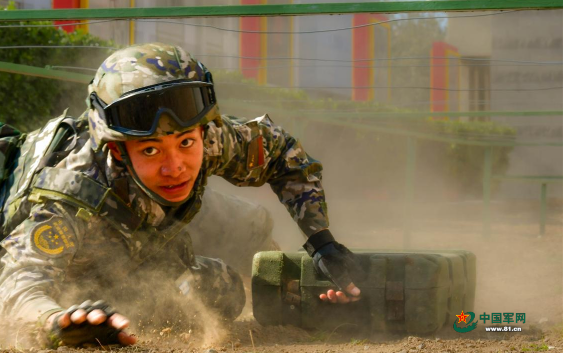 携带弹药箱匍匐通过铁丝网。王浩然 摄