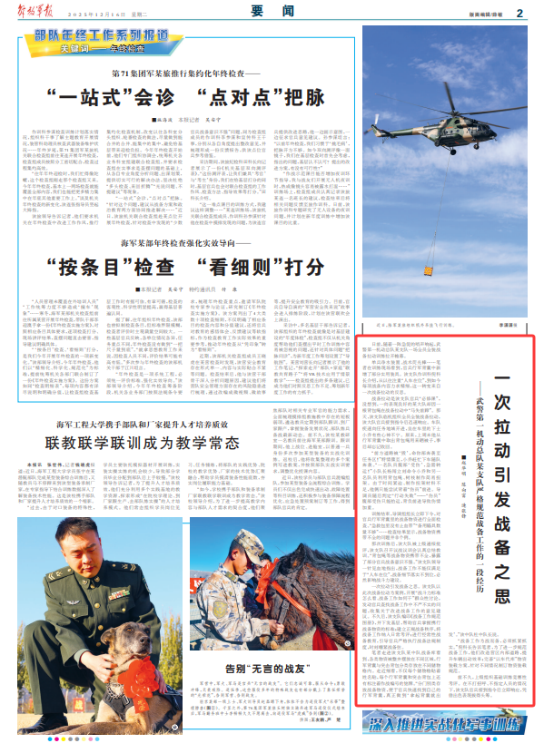 一次拉动引发战备之思。该支队以此次战备拉动为案例,开展“战斗力标准怎么看、战备工作如何干”群众性讨论,发动官兵查找战备工作中不严不实的问题,收集关于改进战备工作的意见建议。不久后,该支队编印《战备工作规范图册》,并下发基层,帮助官兵掌握携行战备物资的标准;建立正规战备秩序,将战备工作纳入日常考评;进行经常性战备教育,引导官兵严格执行战备法规制度,时刻绷紧战备弦。