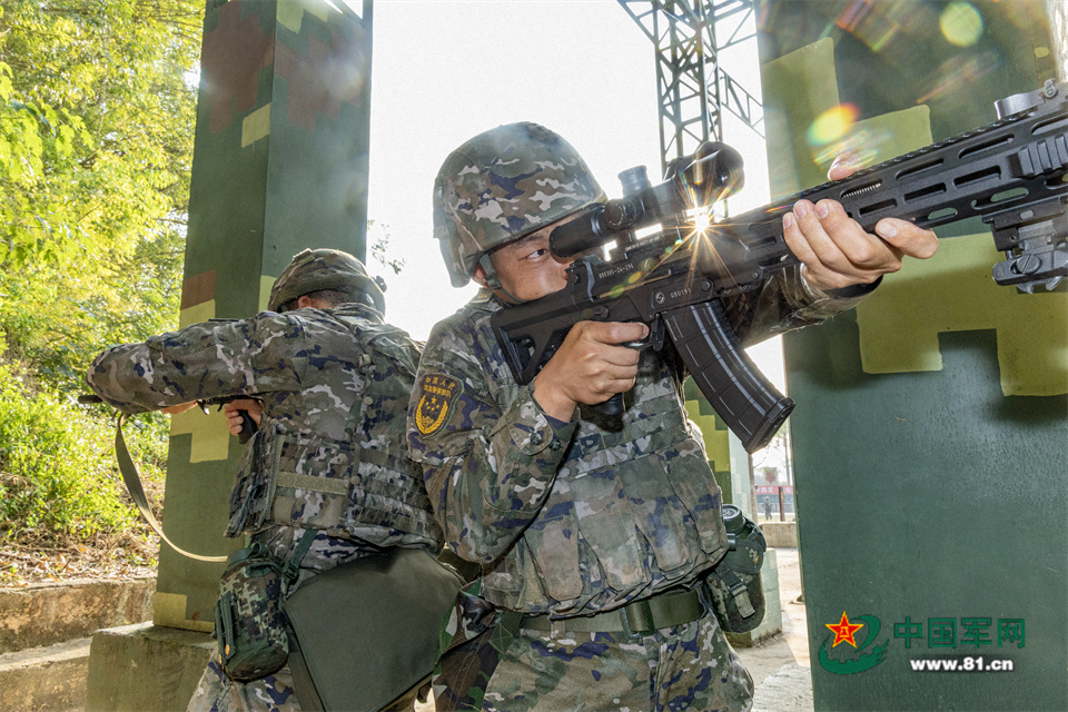 近日,武警广西总队机动支队官兵紧贴实战要求,组织开展战术捕歼演练。