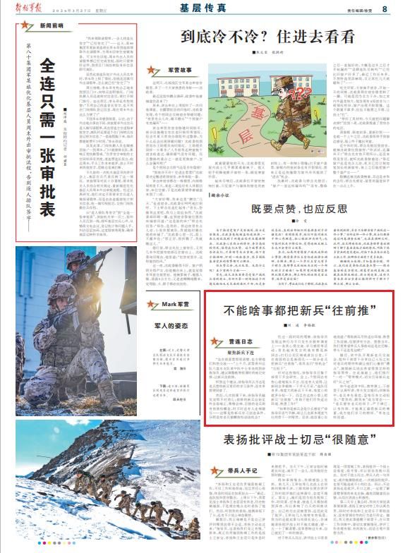 “如果你是新兵会是什么感觉?”徐指导员语气平静,却让几名原本理直气壮的骨干一时哑然。见状,他语重心长地说道:“帮助新兵尽快适应环境、熟悉工作没错,但要讲究方法。想想当年,你们更希望带兵人靠前站还是往后躲、带头干还是甩包袱?”