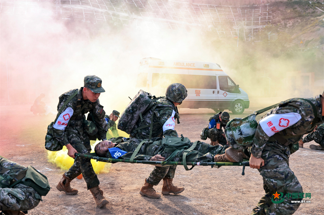 演练现场,野战医疗队人员紧急分类后送“伤员”。侯崇慧 摄
