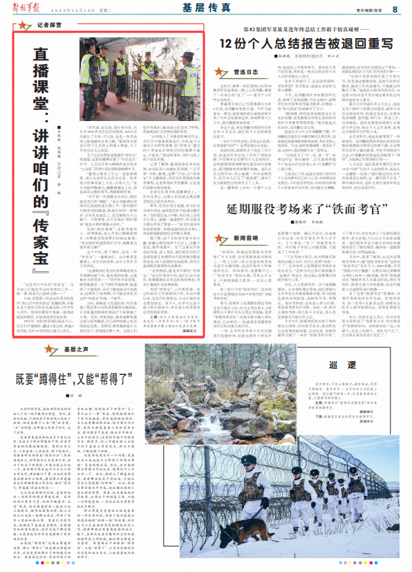 用活“传家宝”,上好教育课。该总队政治工作部领导介绍,活动开展以来,官兵们扎根岗位、矢志打赢的信念更加坚定。前不久,在多专业战斗能力综合检验中,多名战士因表现突出受到表彰奖励。