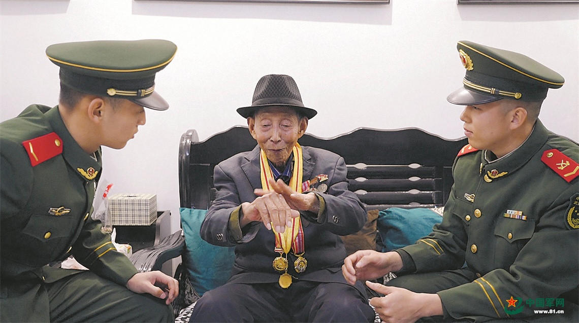 官兵聆听抗战老兵张汉奇讲述战斗故事。向峥旭摄