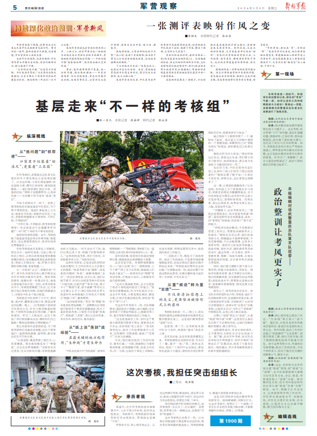 “持续深化政治整训,不仅要清扫思想上的灰尘,更要坚决破除形式上的虚功。”谢组长告诉记者,他们改进考核方式,明确提出不搞事事留痕,不玩花拳绣腿,不以台账厚薄、记录多少简单评判。取而代之的是将考核融入战备训练、组织生活、随机教育等具体活动中,通过列席一次支委会、旁听一堂教育课、观摩一场战术演练,实地实景检验组织效能、官兵素养和实战能力等指标。