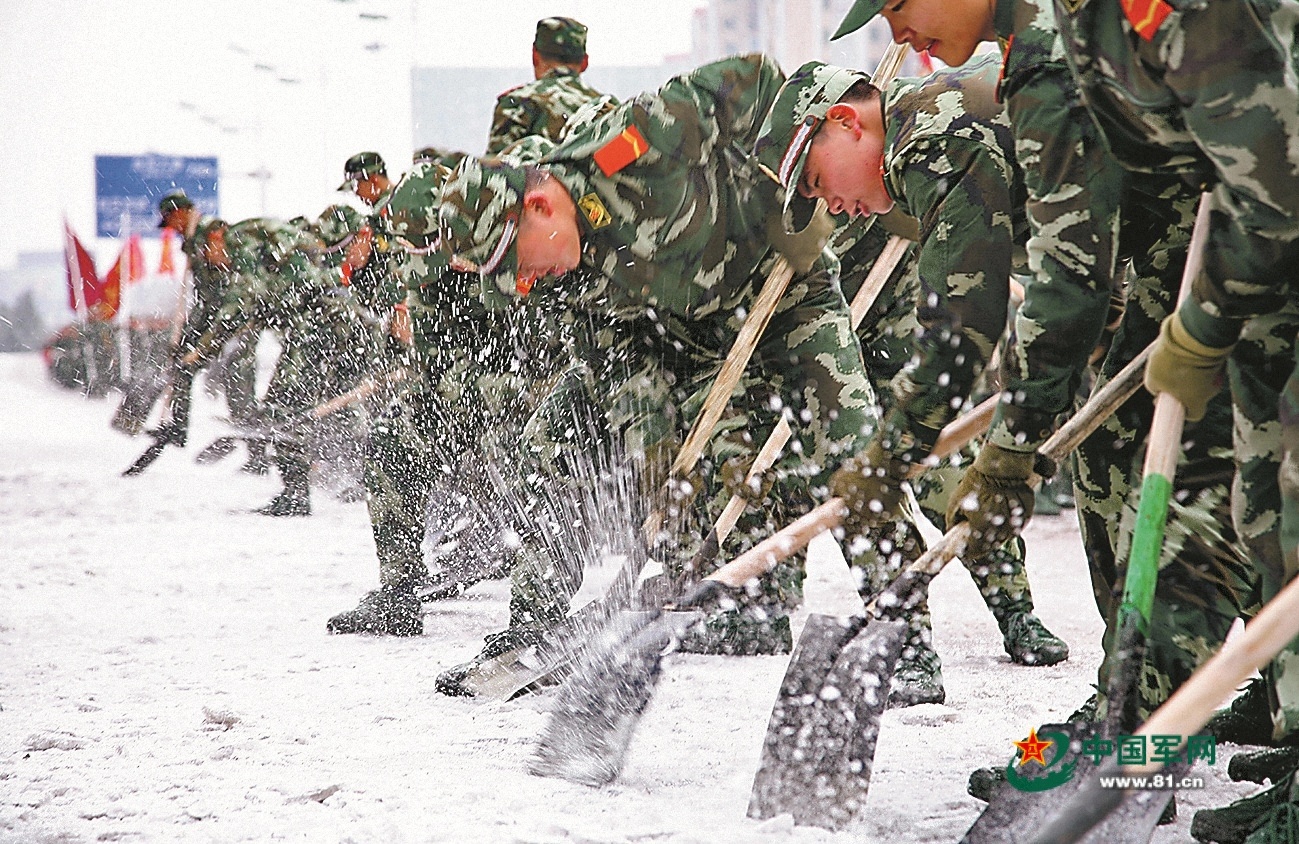 官兵参与抗击雨雪冰冻灾害(资料图片)。作者提供