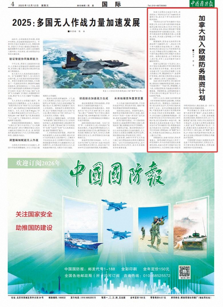 加拿大防务专家罗杰·希尔顿分析称,借助该计划提供的低息贷款,加拿大可加速采购下一代战斗机、常规潜艇、无人机、反潜巡逻机及天基通信终端等关键装备。更重要的是,这将促使加拿大尽快达到北约规定的“防务开支占GDP2%”标准。