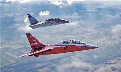两架土耳其“自由鸟”教练机编队飞行。