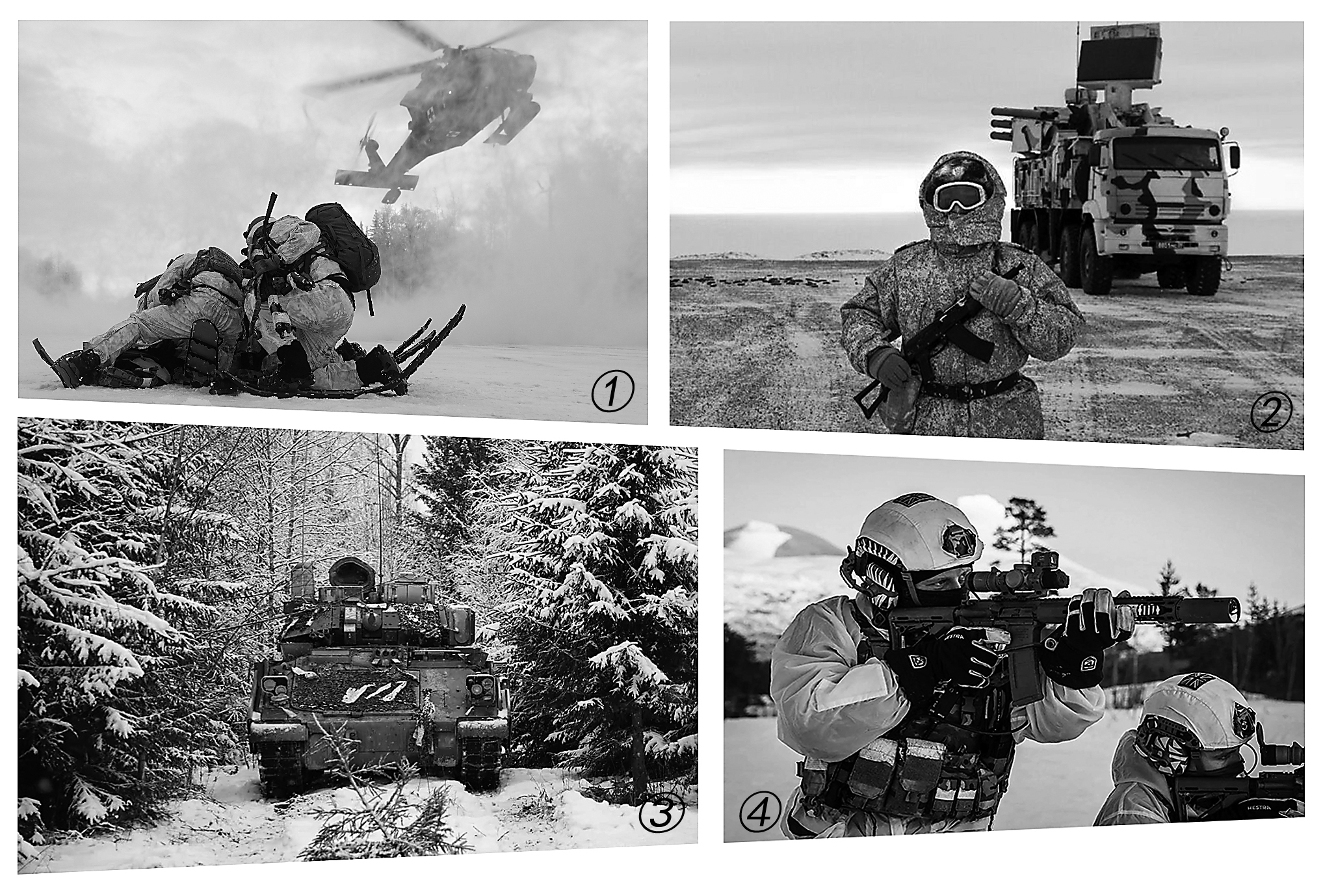 图①:美军在阿拉斯加地区进行演练。图②:俄罗斯在北极地区科捷利内岛部署的“铠甲-S1”防空系统。图③:美军参加“北极熔炉2025”多国联合演习。图④:英军在挪威进行射击训练。制图:胡云艳