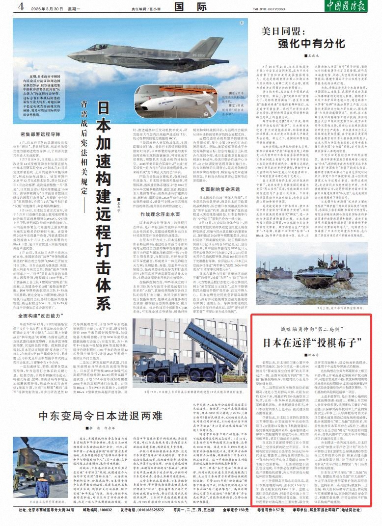 为支撑这一系列远洋动作,日本已决定将“加强太平洋防卫计划”列为今年将修订的《国家安全保障战略》等安保三文件的核心内容,拟重点建设港口、跑道及雷达网。防卫省还计划在4月新设“太平洋防卫构想室”,专门负责落实相关措施。