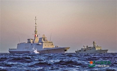 法国海军阿基坦级护卫舰(左)和丹麦海军泰提斯级远洋巡逻舰参加“北极耐力”演习。