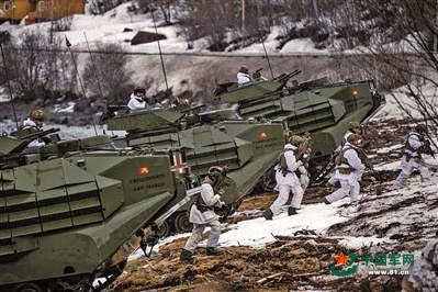 意大利海军陆战队在挪威演练寒区两栖突击。