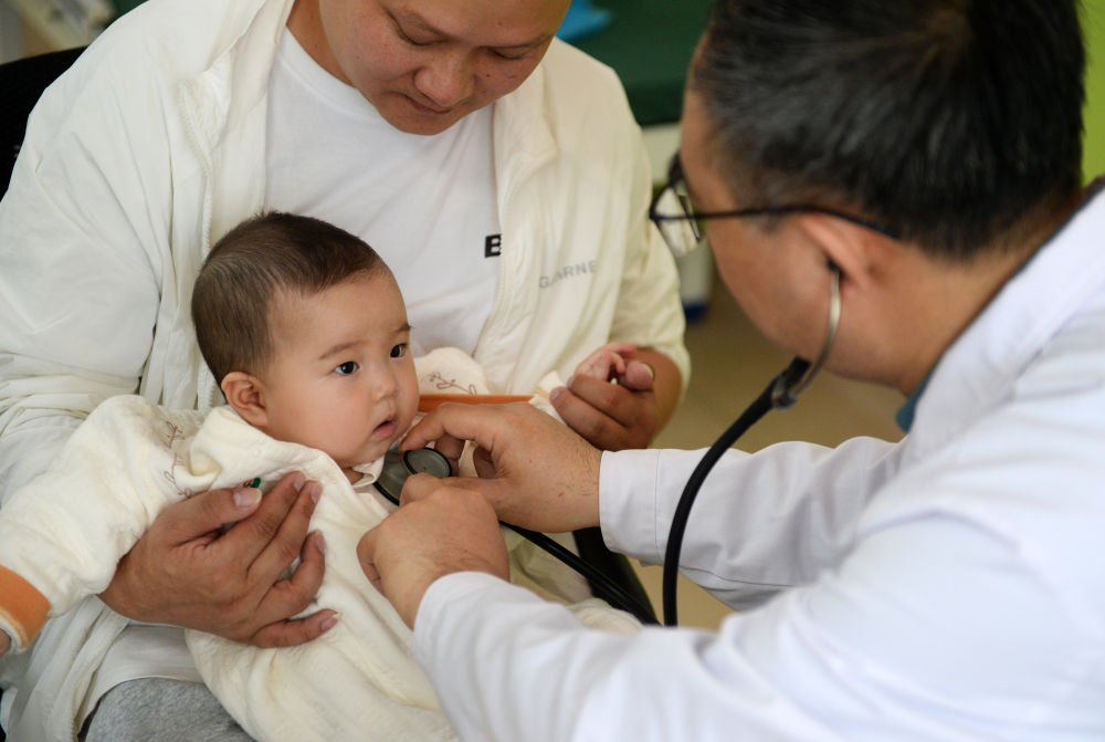 2025年4月22日,在贵州省贵阳市观山湖区妇幼保健院,来自山东第一医科大学附属中心医院的医疗专家在为孩子做检查。2025年4月,“天使之旅——先心病患儿筛查救助行动”走进贵州,由中国红十字基金会和山东第一医科大学附属中心医院组成的志愿团队,在贵阳市、清镇市、兴义市、册亨县等地开展先天性心脏病筛查公益行动,符合手术指征的患儿将接受免费手术治疗。