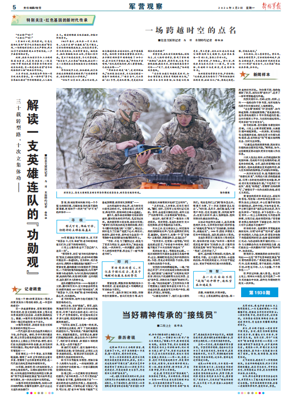 对于如何当好精神传承的“接线员”,我在连队转型中体会更深。部队调整改革后,我转岗到全新的数据专业,面对陌生的代码,一度感到焦虑和茫然。