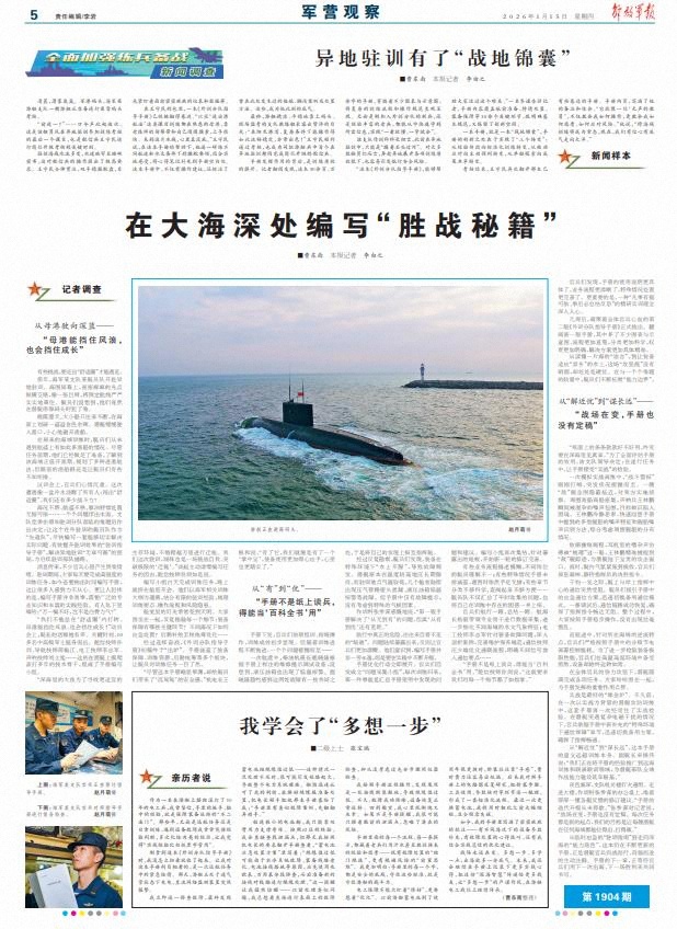 从临时应急的“驻训指南”到走向深海的“能力底色”,这本仍在不断更新的手册,正是潜艇官兵向战而行、向强而进的生动注脚。手册的下一章,正等待官兵们用下一次出海、下一场胜利来共同书写。