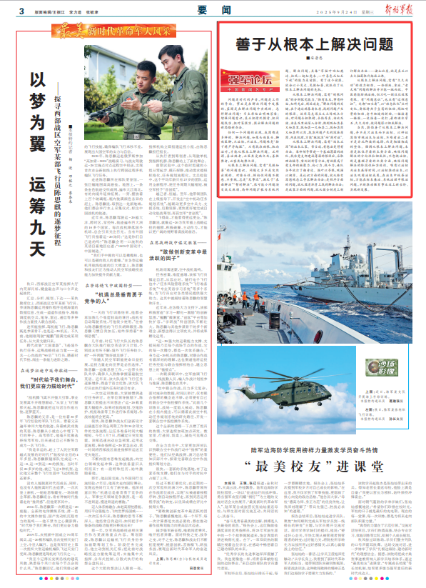 当然,提倡善于从根本上解决问题,并不是只治本而不治标。以辩证思维审视治本与治标,不难看出二者不是非此即彼的选择,而是相辅相成的整体。强调从根本上解决问题,本质是抓住矛盾的主要方面,确保问题解决的方向性和彻底性;不忽视治标,则是兼顾矛盾的次要方面,确保问题解决的阶段性和实效性。唯有以治标为治本赢得时间,以治标推动治本,以治本巩固治标成果,在治本中统筹治标,方能在标本兼治、系统治理中根治问题,不断推动强军事业迈上新台阶、实现新发展。