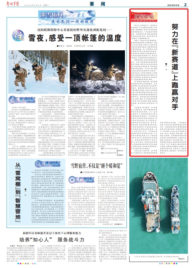 战争的较量,其实早在战前就开始了。当前,世界范围内的新军事革命突飞猛进,战争不仅发生在传统领域,还会在新兴领域打响,作战维度呈现多样化趋势。可以说,新兴领域是我们赢得未来战争的“新赛道”。对我军来说,只有在“新赛道”上深钻细研,推进新域新质作战力量投入实战化军事训练,使其转化为先进战斗力,才能掌握现代战争主动权。