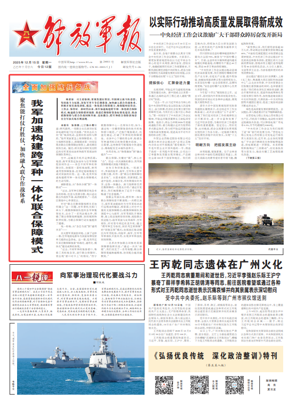 来源:中国军网-解放军报 作者:张添溯 陈小菁 责任编辑:孙悦 发布:2025-12-15 06:20:25
