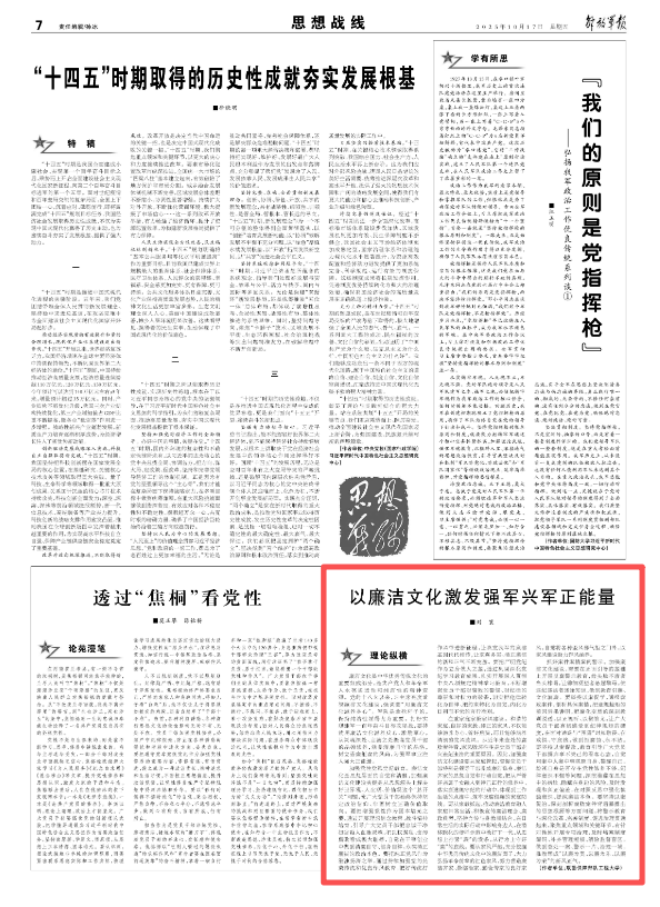 以廉洁文化激发强军兴军正能量