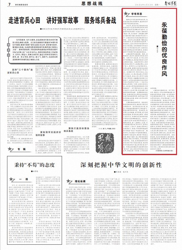 以勤俭锻造过硬作风。艰苦的环境是有效的练兵场,勤俭的习惯是有力的磨刀石。我军的成长壮大史,就是一部在极端困难条件下艰苦奋斗、锻造过硬作风的历史。长征途中,红军将士衣衫褴褛、食不果腹,却“风雨侵衣骨更硬,野菜充饥志越坚”,跨越了万水千山,凭借的正是在艰苦环境中淬炼而成的钢铁般意志。1941年,八路军120师359旅奉命开赴荒无人烟的南泥湾,在“一把镢头一支枪,生产自给保卫党中央”的口号下,官兵们一边战斗、一边生产,在缺乏资金和工具的情况下,短短3年便将荆棘遍野的“烂泥湾”变成了“陕北好江南”。勤俭节约,不仅创造了丰富的物质财富,更磨砺了攻坚克难、艰苦奋斗的意志品质,铸就了官兵一致、同甘共苦的深厚情谊,养成了令行禁止、严守纪律的优良作风。当前,我军建设条件和官兵生活水平有了根本性改善,但长期和平环境对战斗意志的考验更为严峻。唯有主动将勤俭作为砥砺作风的“磨刀石”,融入官兵日常训练与生活之中,才能永葆一不怕苦、二不怕死的血性胆魄。