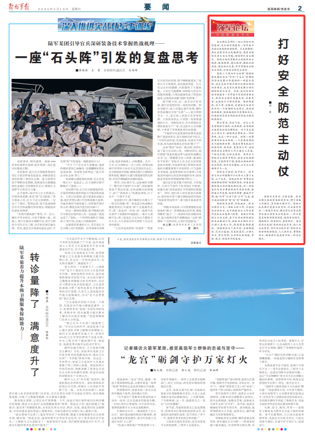 安全稳定是部队一切工作和行动的基础,是打好实现建军一百年奋斗目标攻坚战的重要保障。习主席强调,要认真落实安全发展理念,高度重视防范重大安全问题,确保部队安全稳定。各级应切实掌握安全底数和安全规律,敬畏规律、遵从规律,敏锐识别风险、精准响应处置,牢牢掌握安全防范主动权,打好安全防范主动仗。