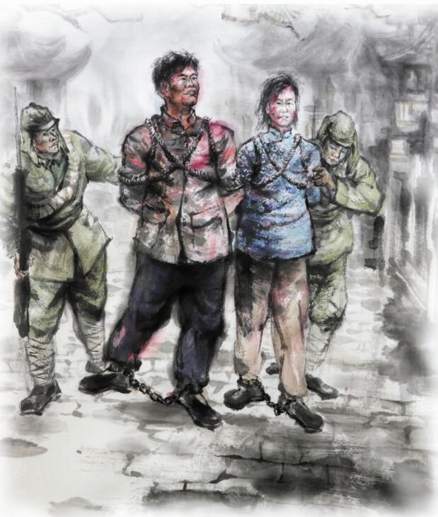 1943年11月12日,黑云密布,雷声在头顶炸响。一对被五花大绑的中年男女,拖着沉重的镣铐,一前一后走在湖熟城岗头的街巷里。