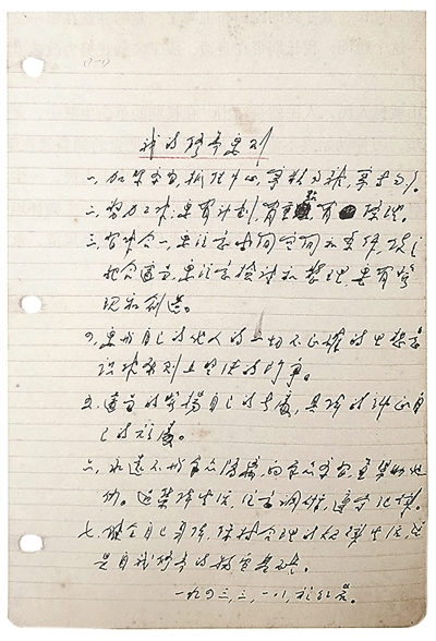 ▲1943年3月18日,周恩来同志在自己45岁生日这天写下《我的修养要则》。 中央档案馆藏