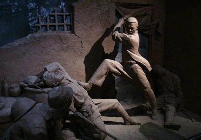 其他敌人见势不妙,惊慌后撤,节振国割开哥哥身上的绑绳冲出屋门,就在他跳上院墙时,左腿中弹。好一个节振国,单腿一个抢步冲向敌人,扬手对着近前小鬼子的面门就是一刀。趁敌人退出院外的机会,他一个箭步翻上墙头。那天,他一人砍翻了7个鬼子。