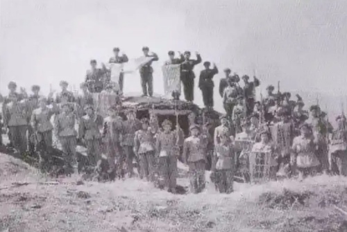 ▲我志愿军官兵向英雄阵地“丁字山”告别。