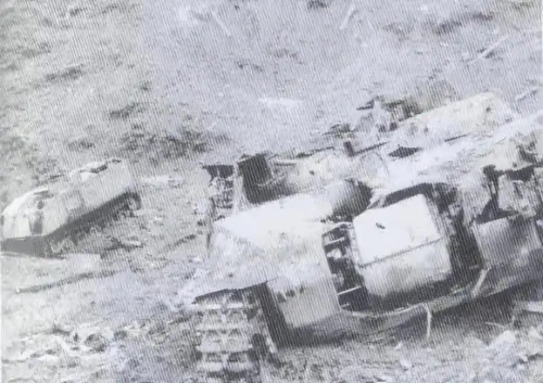 ▲“丁字山”战斗中,我志愿军反坦克炮兵摧毁的美军装甲车。