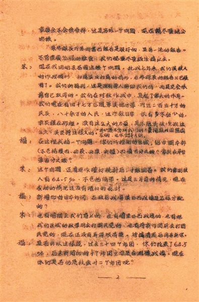 ▲朱德、叶剑英同志与外国记者谈话记录。