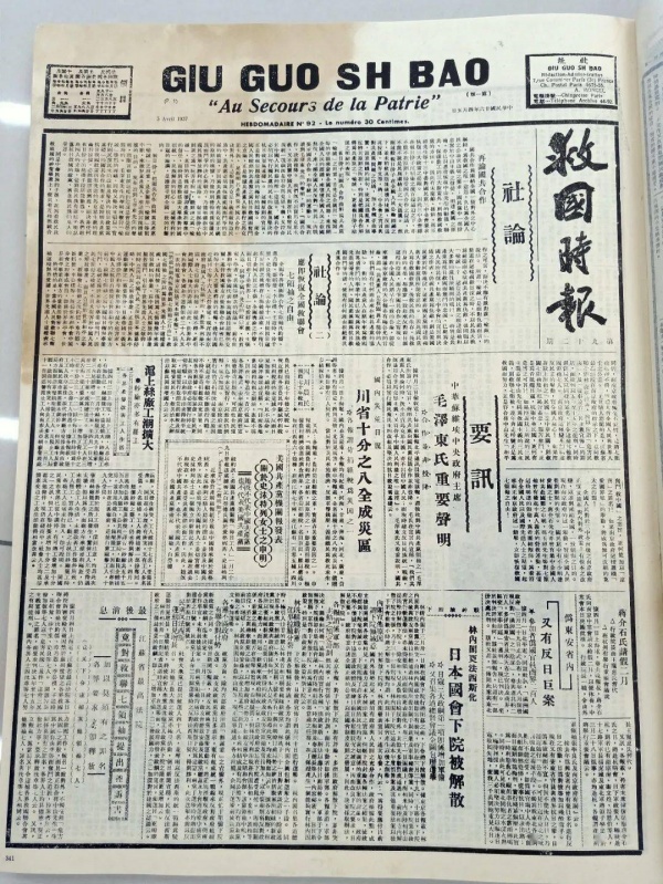 《救国时报》是1935年12月中国共产党驻共产国际代表团在法国巴黎创办的政治性报刊,陈云、陈潭秋和吴玉章等为报纸的编辑出版作出了重要贡献。报纸创办以后始终秉持抗日救国主张,时刻坚持党的领导这一根本原则。《救国时报》从创办开始就明确以宣传党的抗日民族统一战线为宗旨,所载文章的一个共同属性,就是在党的领导下宣传抗日救国思想与策略,将党的领导贯穿办报发文的始终。其第一期第一版以显著标题刊登了杨靖宇领衔发表的文告,即《东北抗日联军呼吁关内军政领袖“诸公即不救东北宁不自救枪口一致对外建立抗日联军”》,号召团结全国各族人民、各阶层力量共同抗日,这一文献正是东北抗联坚持党的领导根本原则的历史诠释与有力印证。