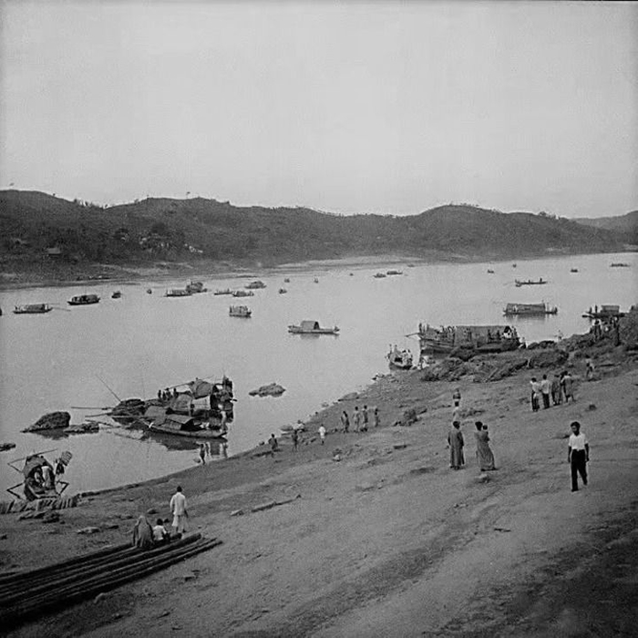 ▲科研机构、高校内迁李庄时在码头搬运行李的老照片。 (李庄古镇景区管委会供图)