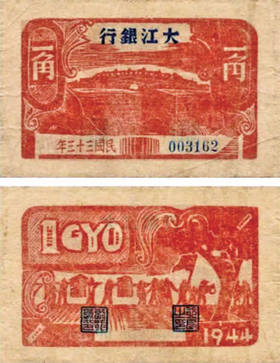 ▲大江银行1944年版1角券。 资料照片